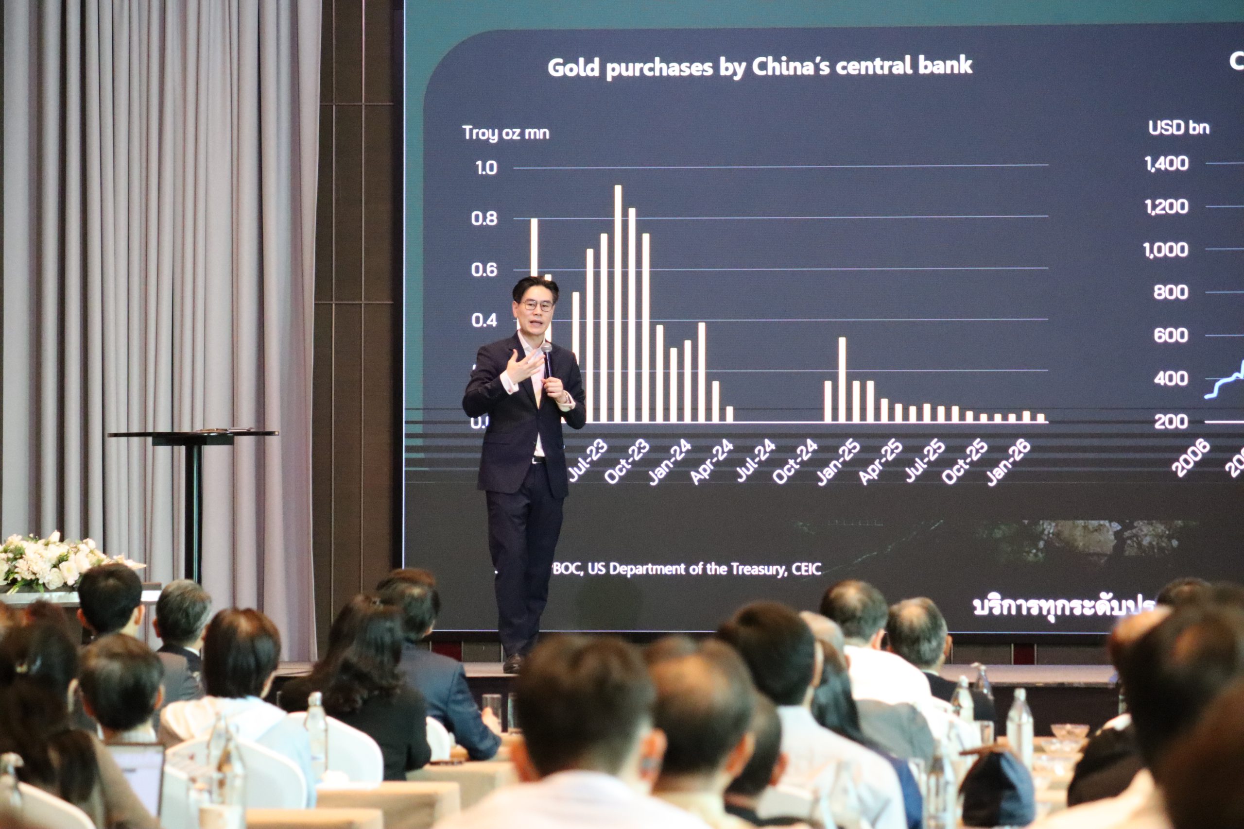สำหรับภาพรวมเศรษฐกิจไทย บริษัทฯ ได้รับเกียรติจากนายบุรินทร์ อดุลวัฒนะ กรรมการผู้จัดการและ Chief Economist จากศูนย์วิจัยกสิกรไทย ร่วมบรรยายเกี่ยวกับแนวโน้มเศรษฐกิจไทย โดยเน้นประเด็นสำคัญ อาทิ ความเสี่ยงด้านพลังงาน ผลกระทบจากสถานการณ์ในตะวันออกกลาง ทิศทางค่าเงินบาท และภาคการส่งออกของไทย