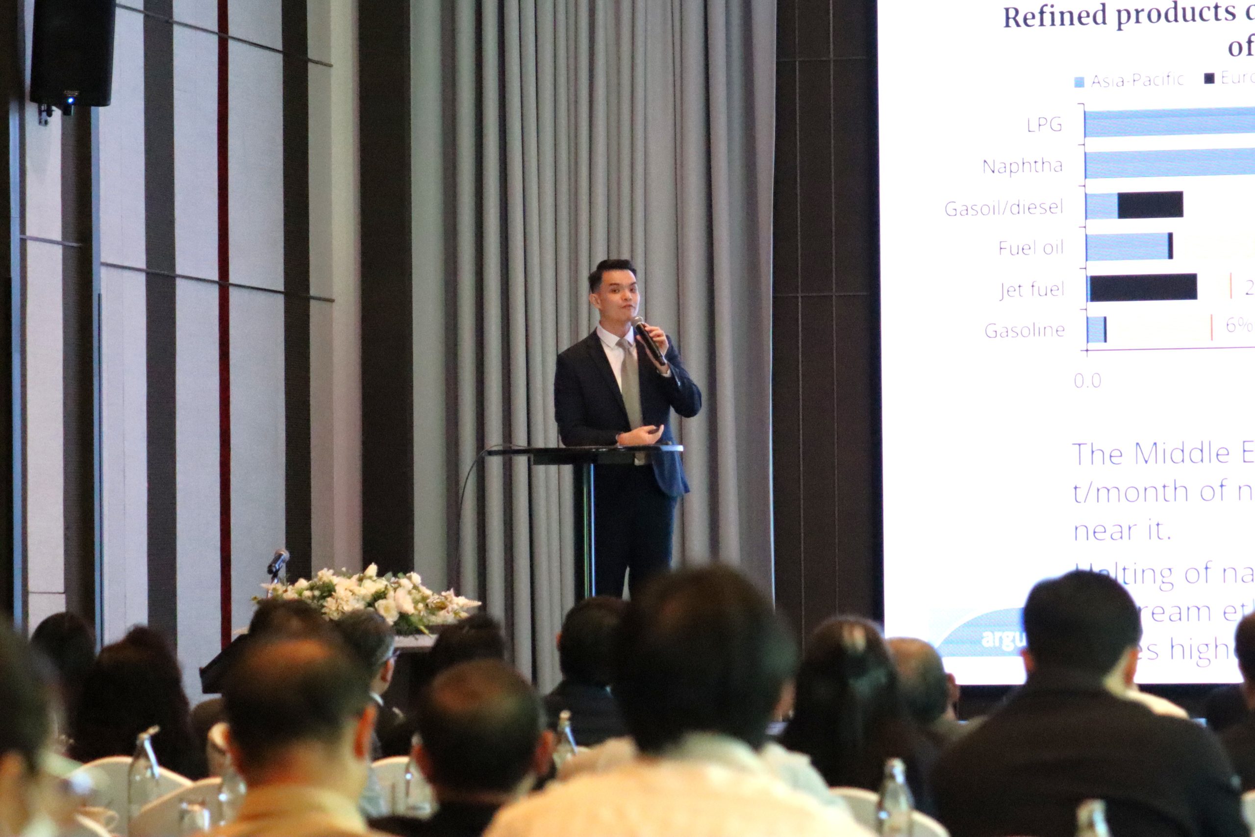 บรรยากาศภายในงานเริ่มต้นด้วยการกล่าวต้อนรับและเปิดงานอย่างเป็นทางการโดย นายโยชิฮิซะ โฮะริเบะ กรรมการผู้จัดการใหญ่ของเอจีซี วีนิไทย ต่อด้วย Mr. Lee Toong Shien จาก Argus Media Singapore Pte. Ltd. ได้นำเสนอภาพรวมตลาดไวนิลโลก พร้อมทั้งวิเคราะห์ปัจจัยเสี่ยงและปัจจัยสนับสนุนที่มีผลต่ออุตสาหกรรมในระยะข้างหน้า