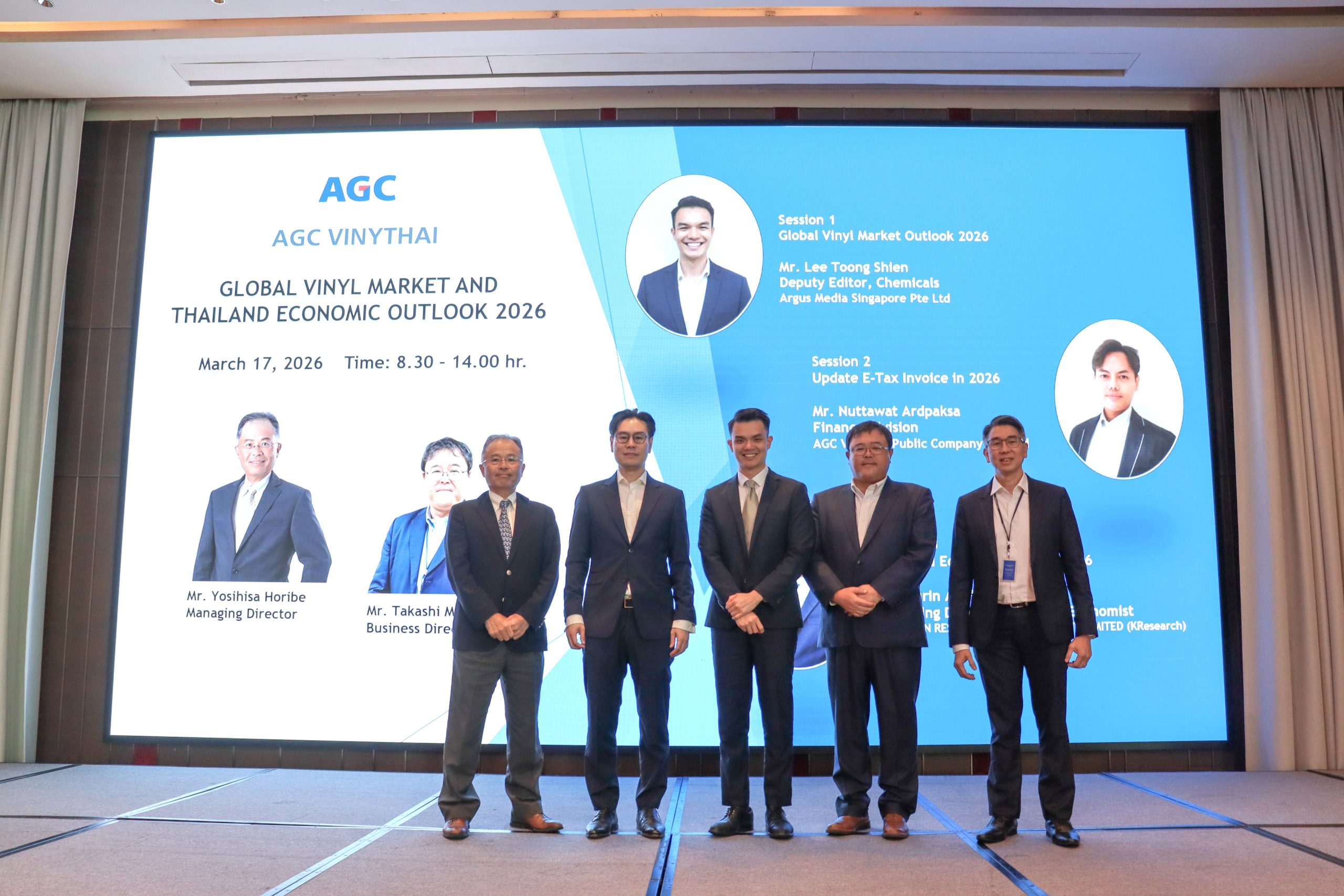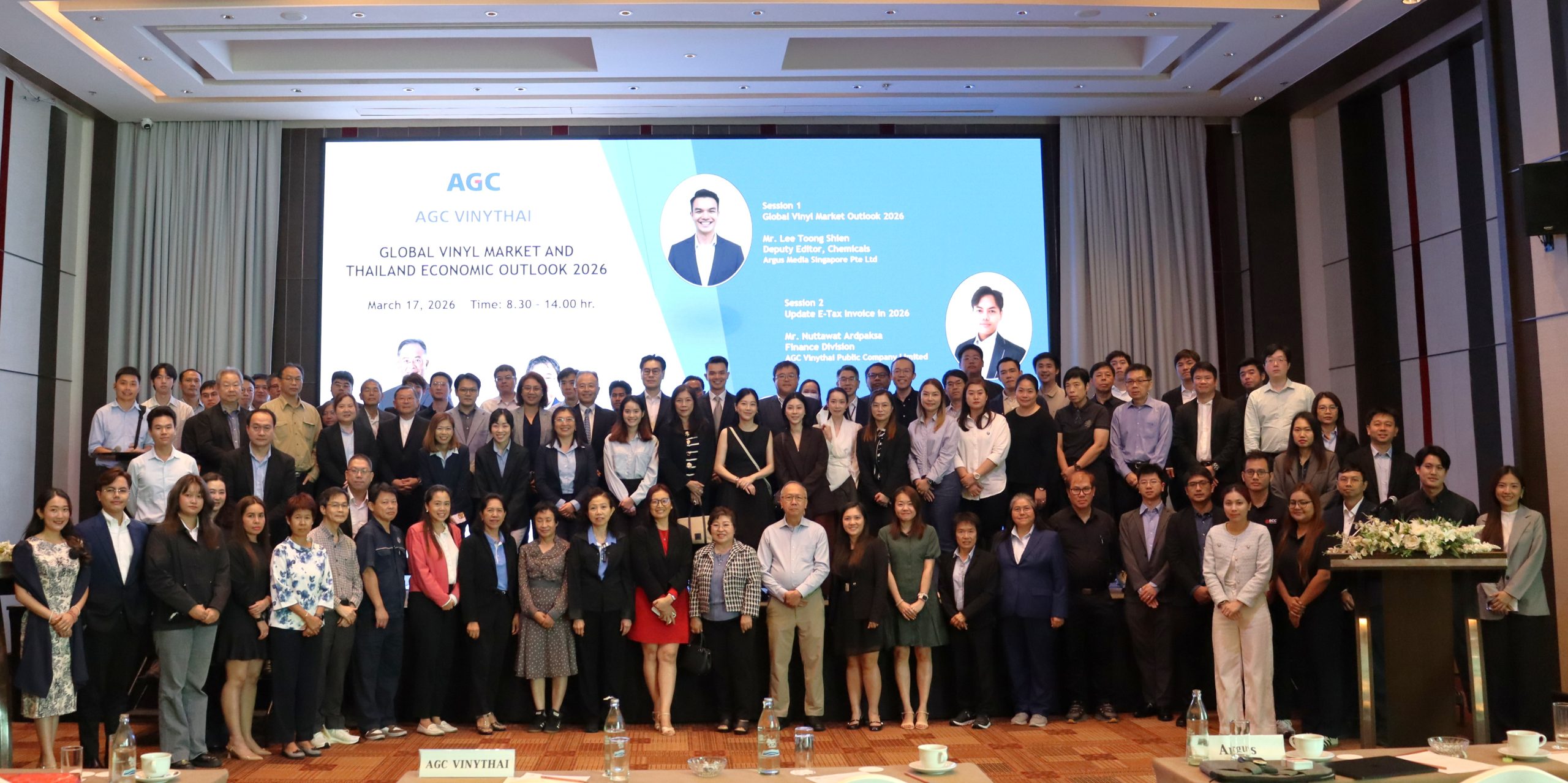 ท่ามกลางสภาวะการแข่งขันทางธุรกิจที่ทวีความเข้มข้น ประกอบกับความเปลี่ยนแปลงอย่างรวดเร็วของเศรษฐกิจโลก บริษัท เอจีซี วีนิไทย จำกัด (มหาชน) ยังคงยึดมั่นในการเป็นพันธมิตรที่แข็งแกร่งเคียงข้างลูกค้า โดยล่าสุดได้จัดงานสัมมนาในหัวข้อ “Global Vinyl Market Trend and Thailand Economic Outlook 2026” เพื่ออัปเดตแนวโน้มตลาดไวนิลโลก ภาพรวมเศรษฐกิจมหภาค รวมถึงทิศทางเศรษฐกิจไทยภายใต้นโยบายภาครัฐซึ่งอาจส่งผลต่อภาคธุรกิจในปี 2569