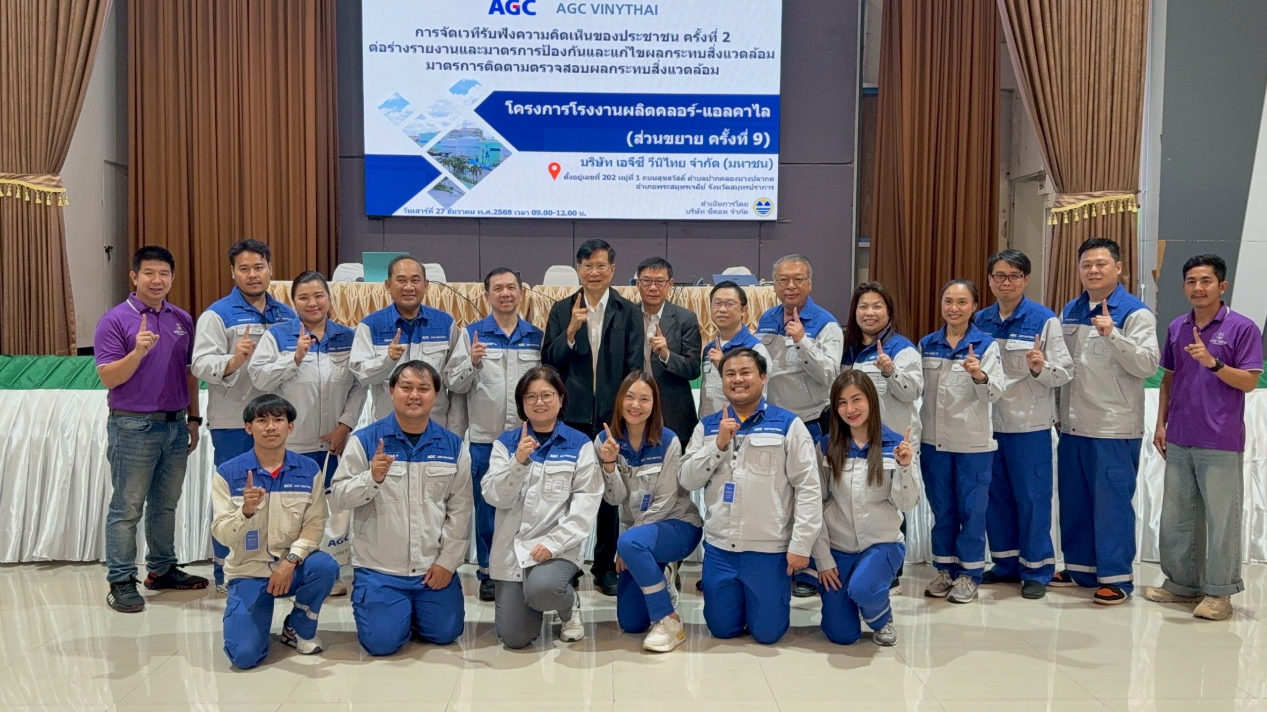 On December 27, 2025, AGC Vinythai Public Company Limited, Phra Pradaeng Plant, conducted the 2nd Public Hearing for the Chlor-Alkali Plant Project (9th Expansion). The meeting held at the Pomnakarachsawatyanon School Auditorium in Samut Prakan Province, aimed to provide stakeholders with an opportunity to exchange views and offer suggestions regarding the project.